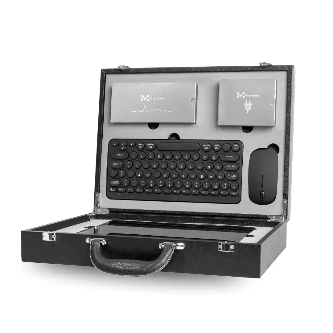 The M19’s refined, ultra-thin design is lighter and more portable, featuring a sleek, streamlined build that redefines on-the-go wellness. Every unit comes fully equipped with a wireless mouse and keyboard, neatly packed in a custom portable case for effortless setup and mobility.